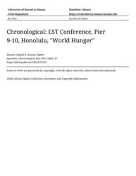 - EST Conference, Pier 9-10, Honolulu, "World Hunger"