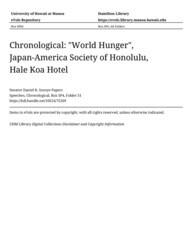 - "World Hunger", Japan-America Society of Honolulu, Hale Koa Hotel