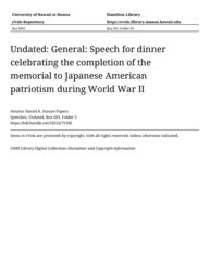 - Speech for dinner celebrating the completion of the memorial to Japanese American patriotism during World War II