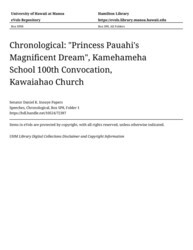 - "Princess Pauahi's Magnificent Dream", Kamehameha School 100th Convocation, Kawaiahao Church