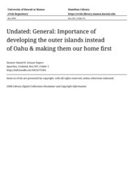 - Importance of developing the outer islands instead of Oahu & making them our home first