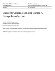 - Senator Daniel K. Inouye Introduction