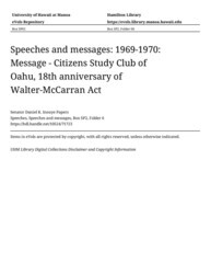 - Message - Citizens Study Club of Oahu, 18th anniversary of Walter-McCarran Act