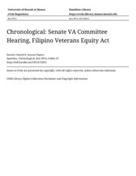 - Senate VA Committee Hearing, Filipino Veterans Equity Act