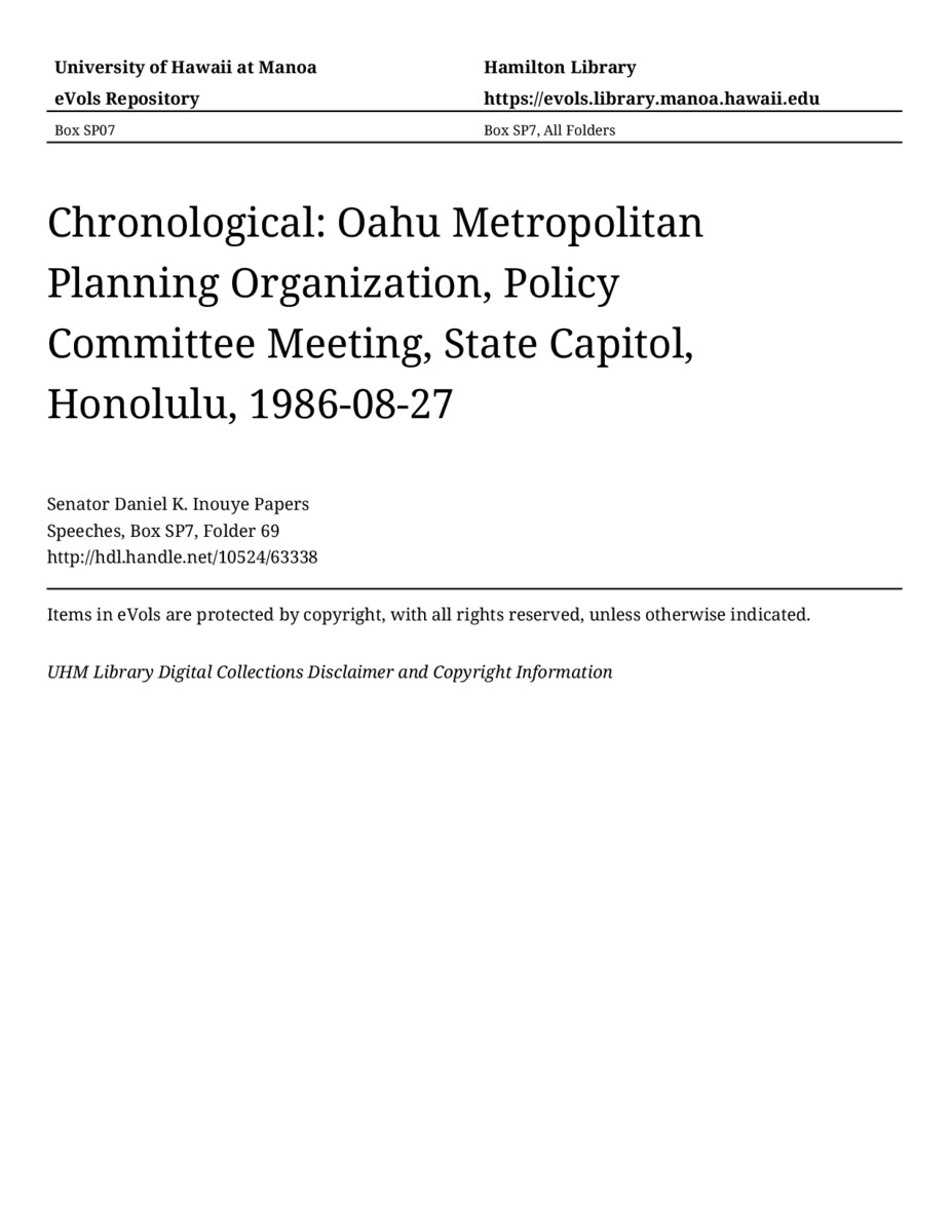 - Oahu Metropolitan Planning Organization, Policy Committee Meeting, State Capitol, Honolulu