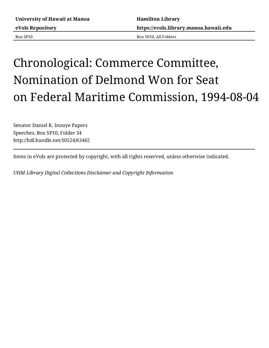 - Hawaiʻi Congressional Papers Collection, University of Hawaiʻi at Mānoa Library, Honolulu, HI