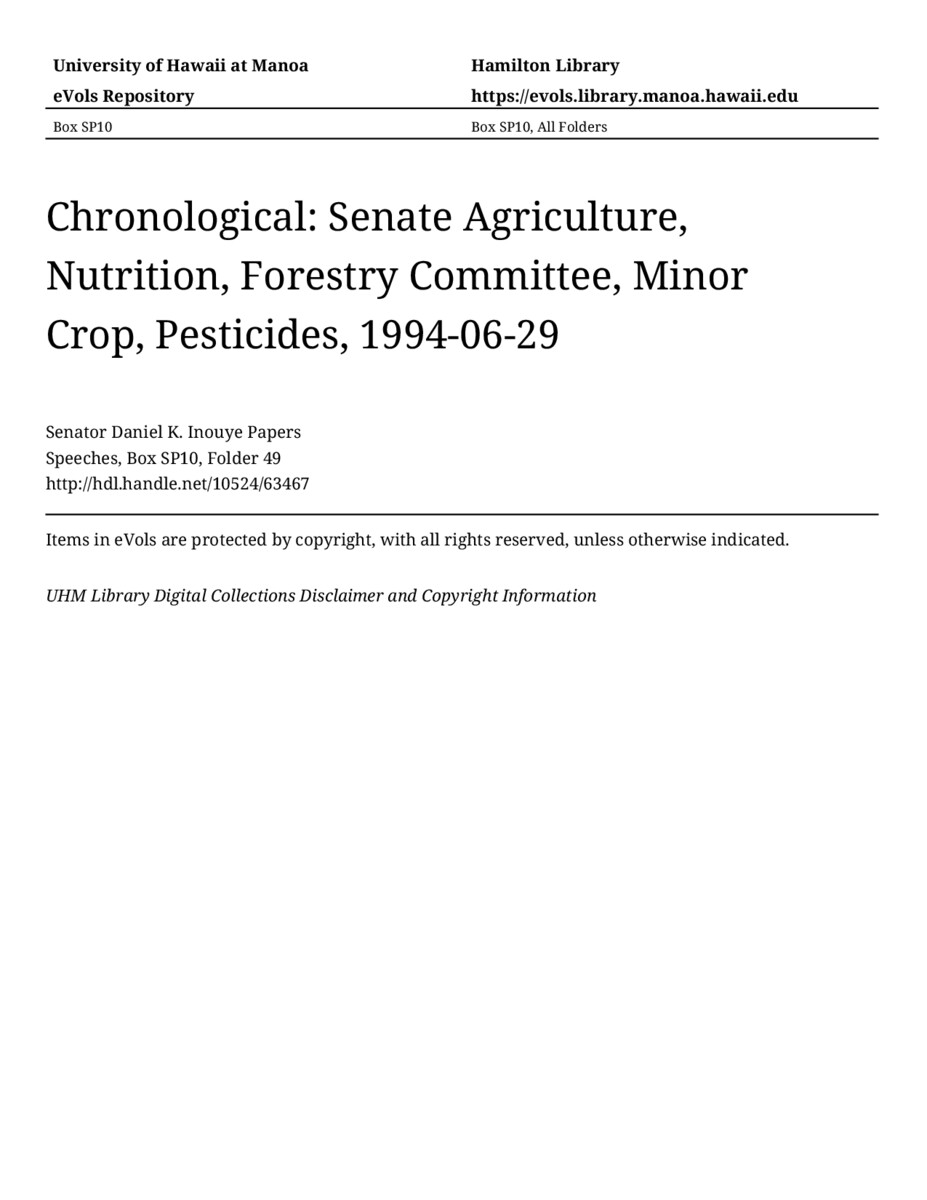 - Senate Agriculture, Nutrition, Forestry Committee, Minor Crop, Pesticides