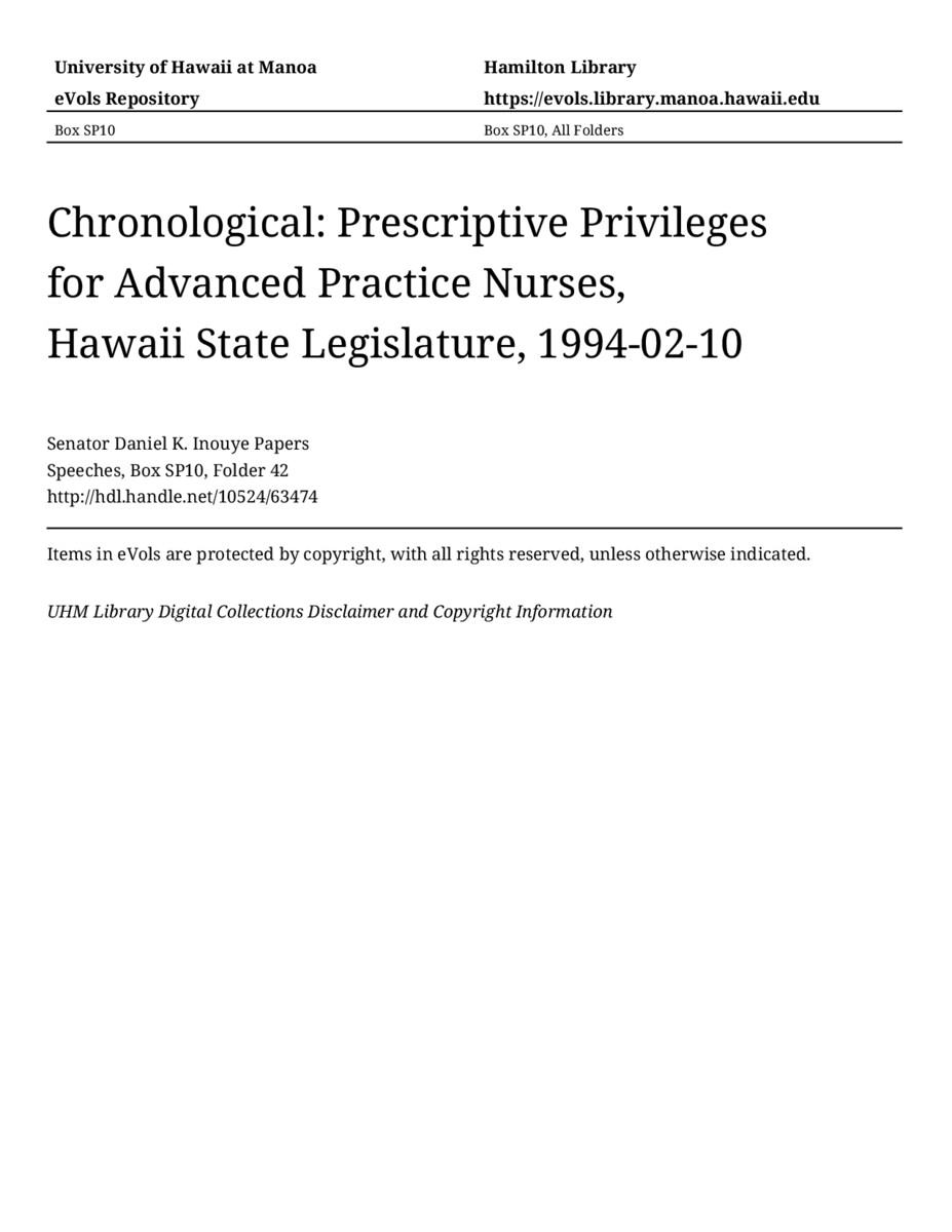 Prescriptive Privileges for Advanced Practice Nurses, Hawaii State Legislature
