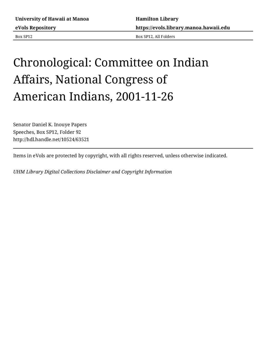 - Committee on Indian Affairs, National Congress of American Indians