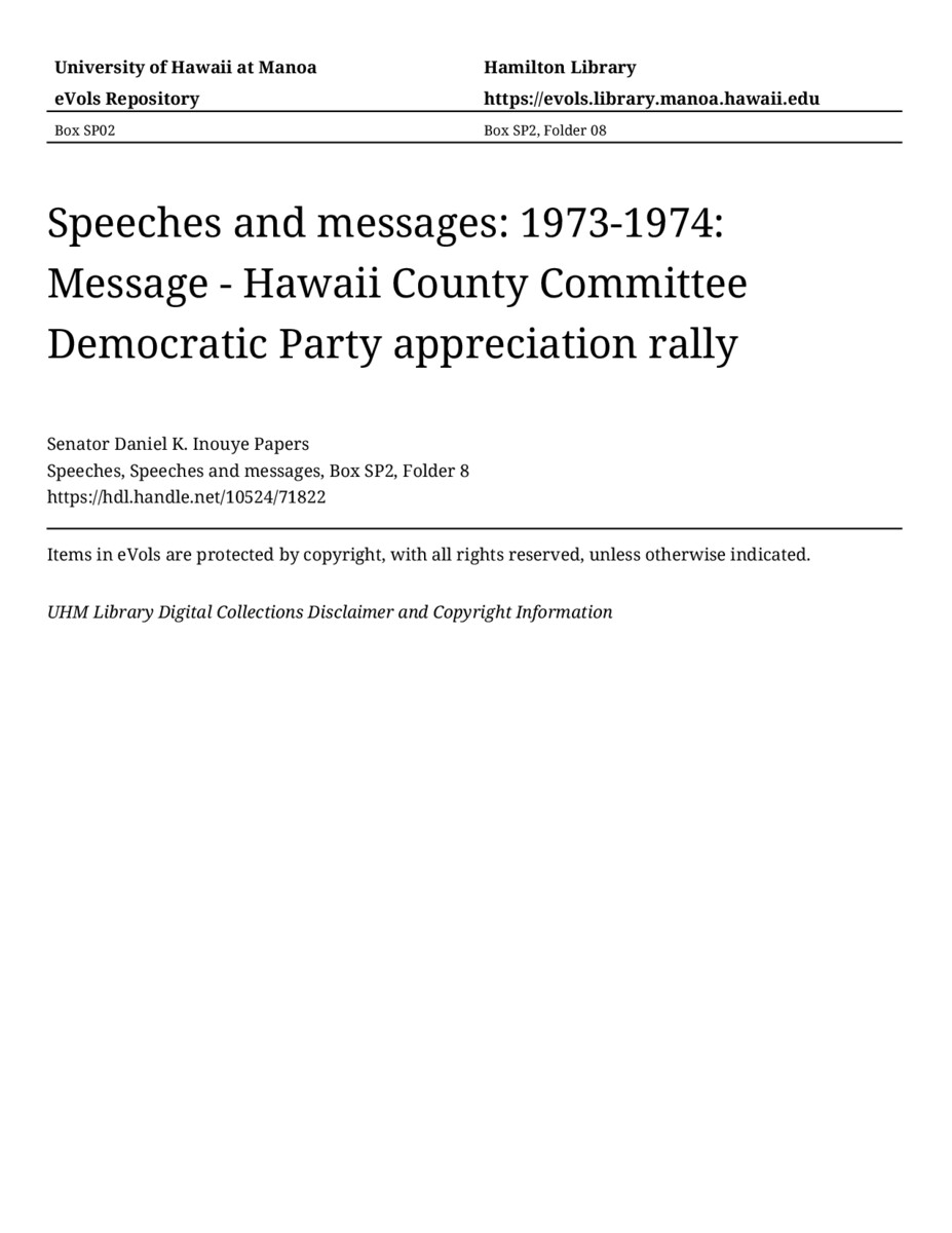 - MANUSCRIPT-HCPC00011, Speeches, Speeches and messages, Box SP2, Folder 8