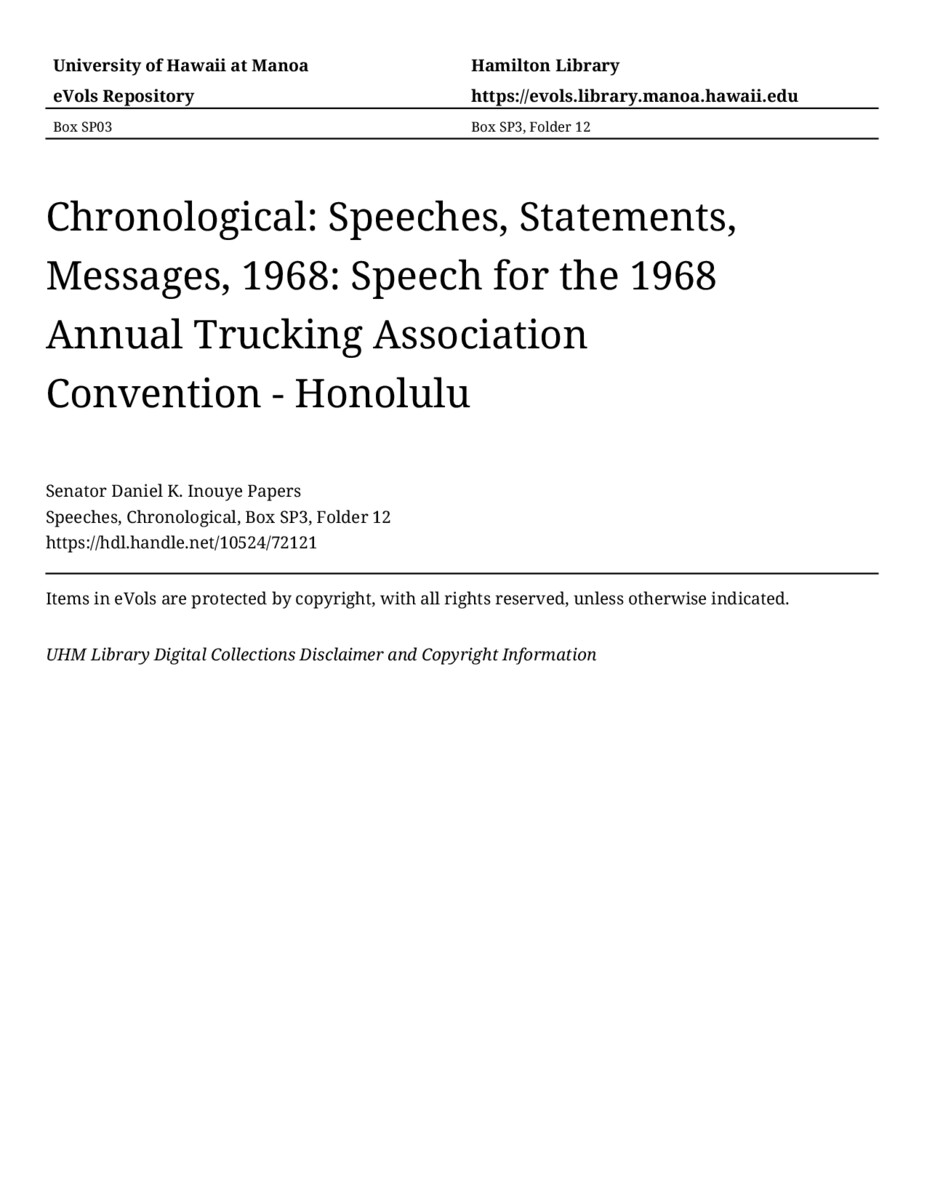 - Speech for the 1968 Annual Trucking Association Convention - Honolulu