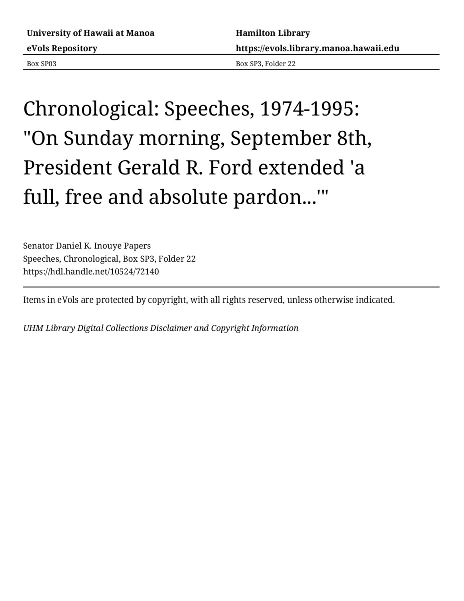 - "On Sunday morning, September 8th, President Gerald R. Ford extended 'a full, free and absolute pardon...'"