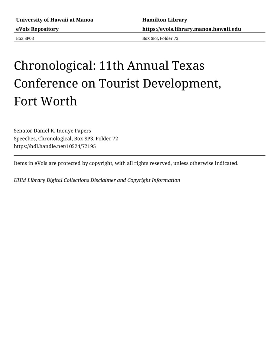 - 11th Annual Texas Conference on Tourist Development, Fort Worth