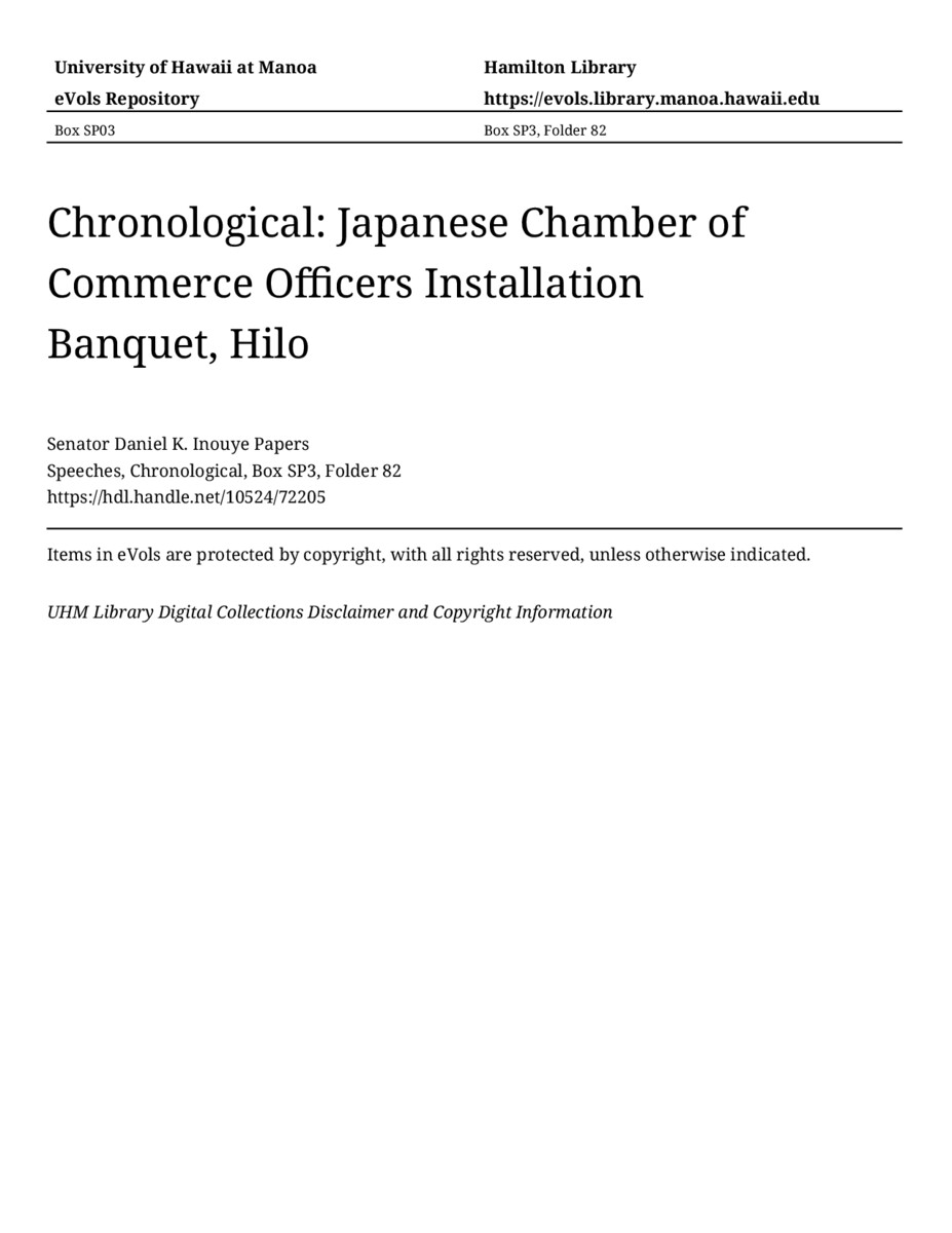 - Japanese Chamber of Commerce Officers Installation Banquet, Hilo