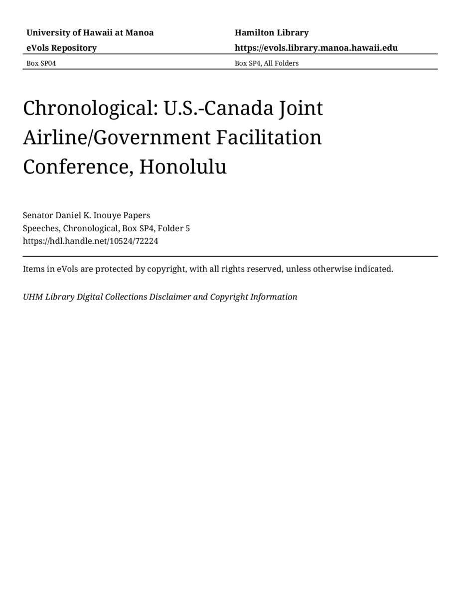 - U.S.-Canada Joint Airline/Government Facilitation Conference, Honolulu