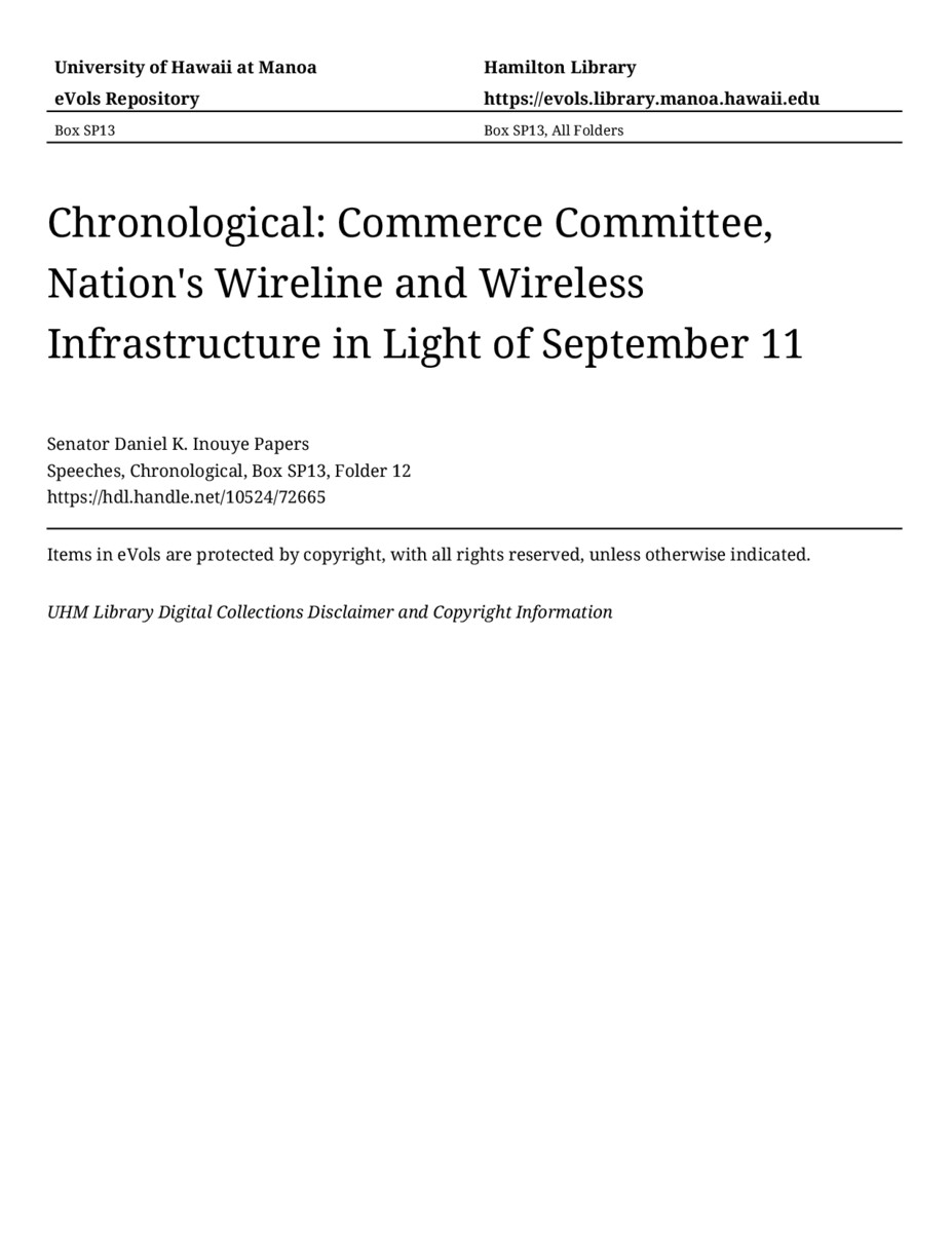 - Commerce Committee, Nation's Wireline and Wireless Infrastructure in Light of September 11
