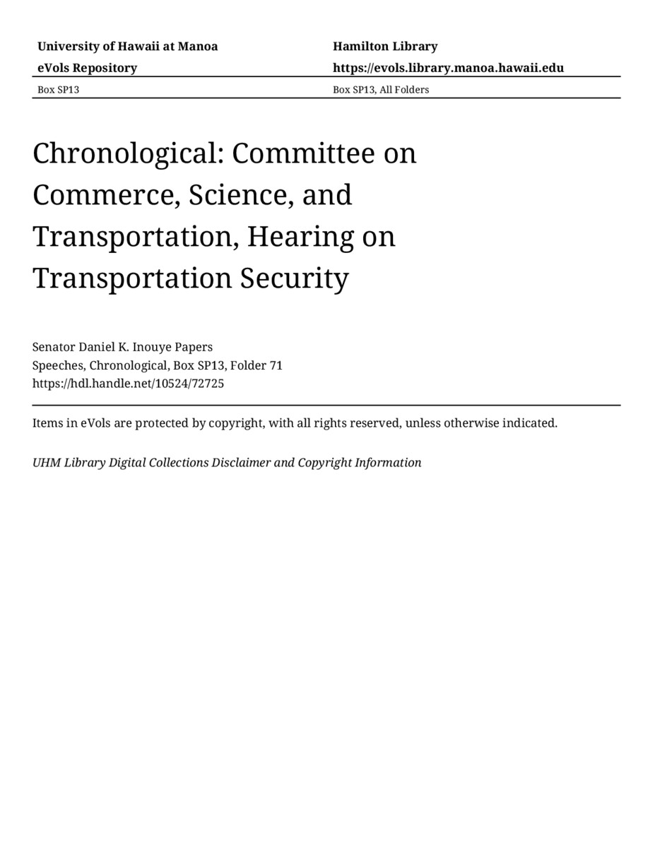 - Committee on Commerce, Science, and Transportation, Hearing on Transportation Security