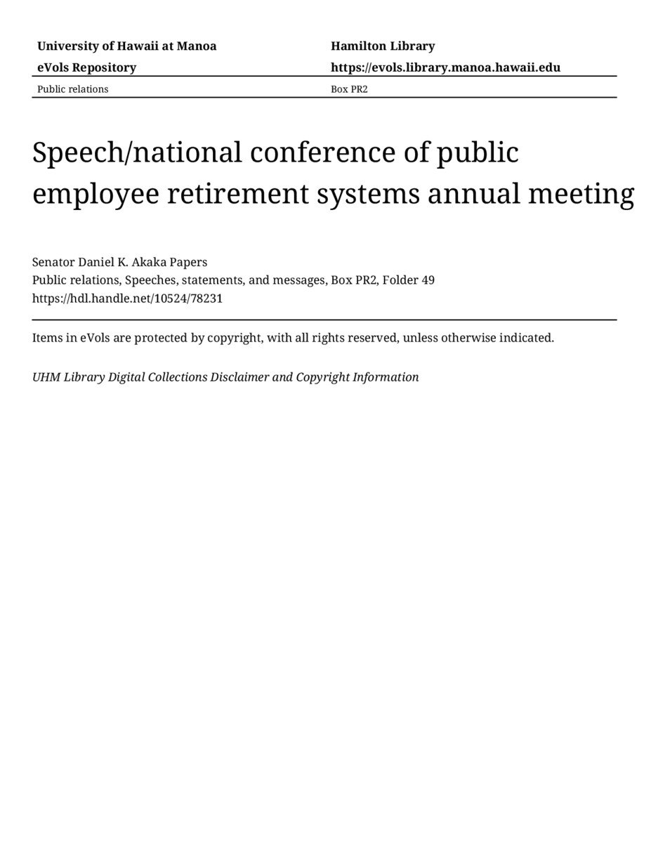 - Speech/national conference of public employee retirement systems annual meeting