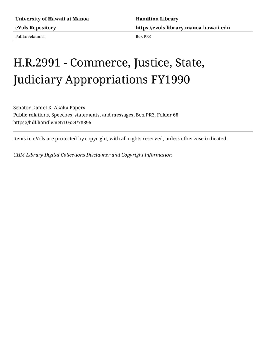 - H.R.2991 - Commerce, Justice, State, Judiciary Appropriations FY1990