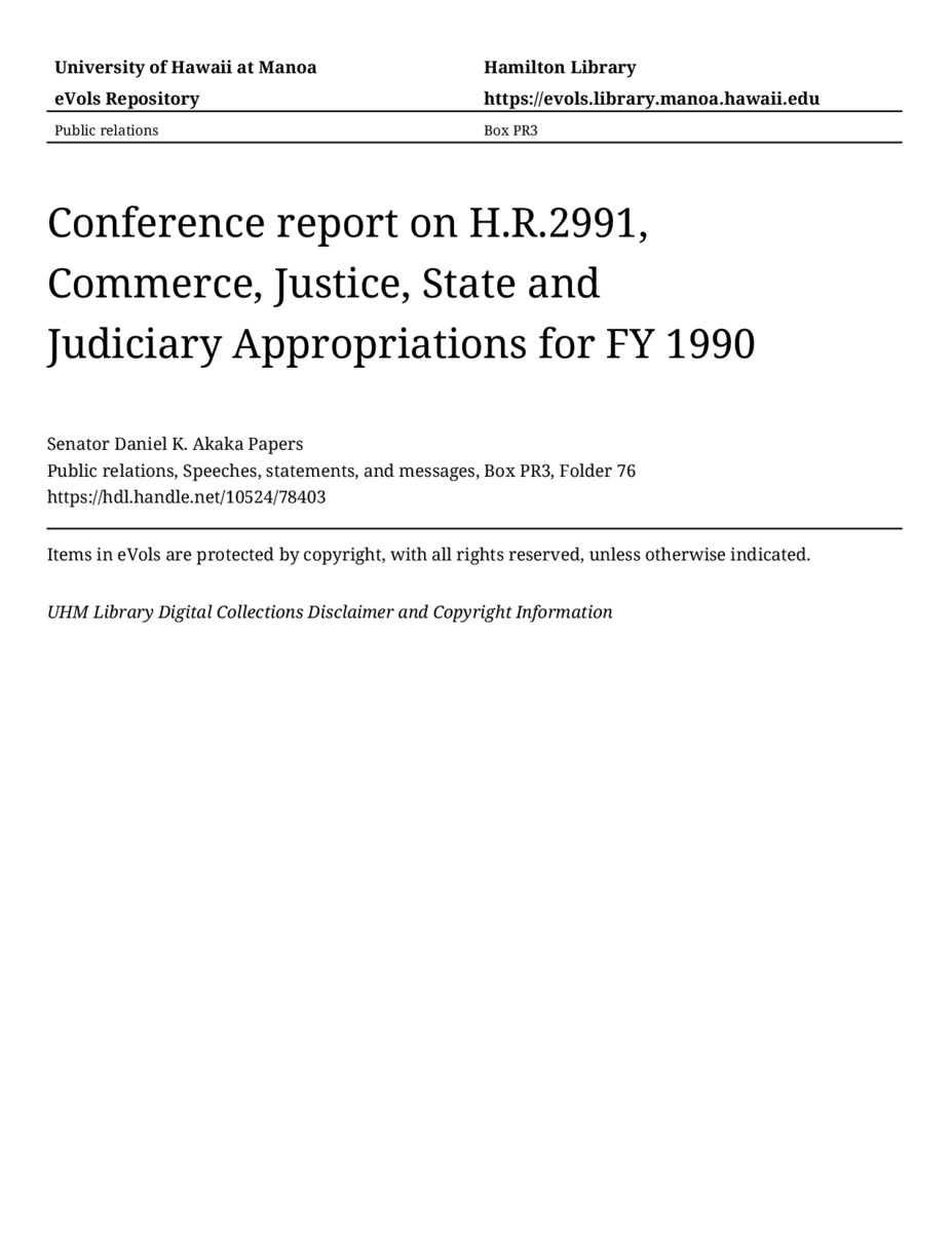 - Conference report on H.R.2991, Commerce, Justice, State and Judiciary Appropriations for FY 1990