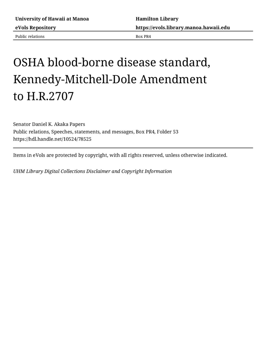 - OSHA blood-borne disease standard, Kennedy-Mitchell-Dole Amendment to H.R.2707