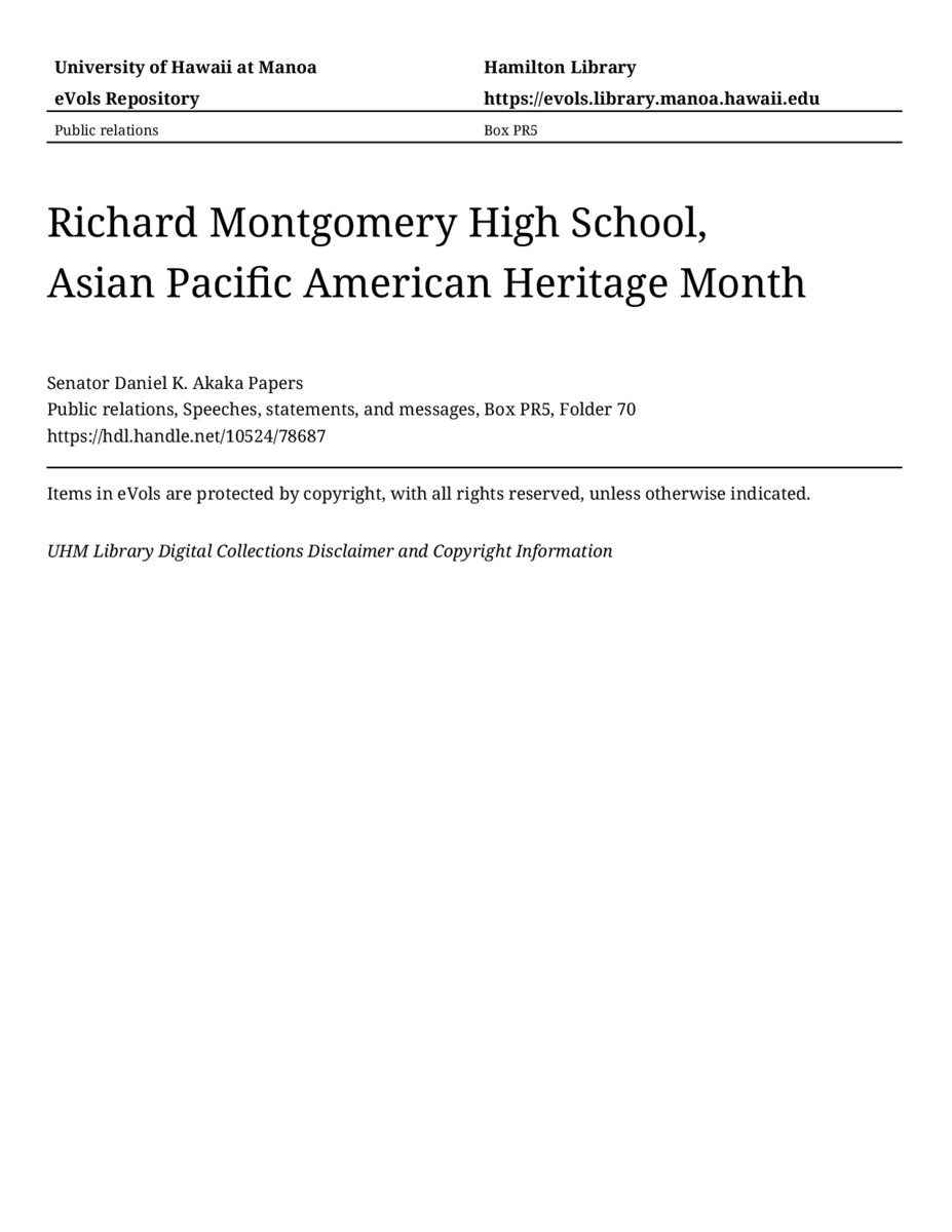 - Richard Montgomery High School, Asian Pacific American Heritage Month