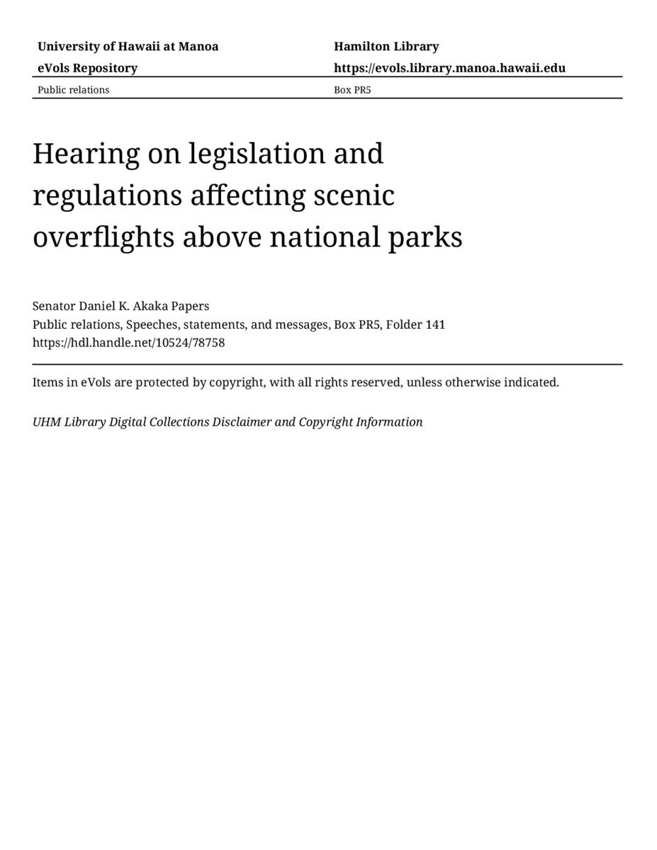 - Hearing on legislation and regulations affecting scenic overflights above national parks
