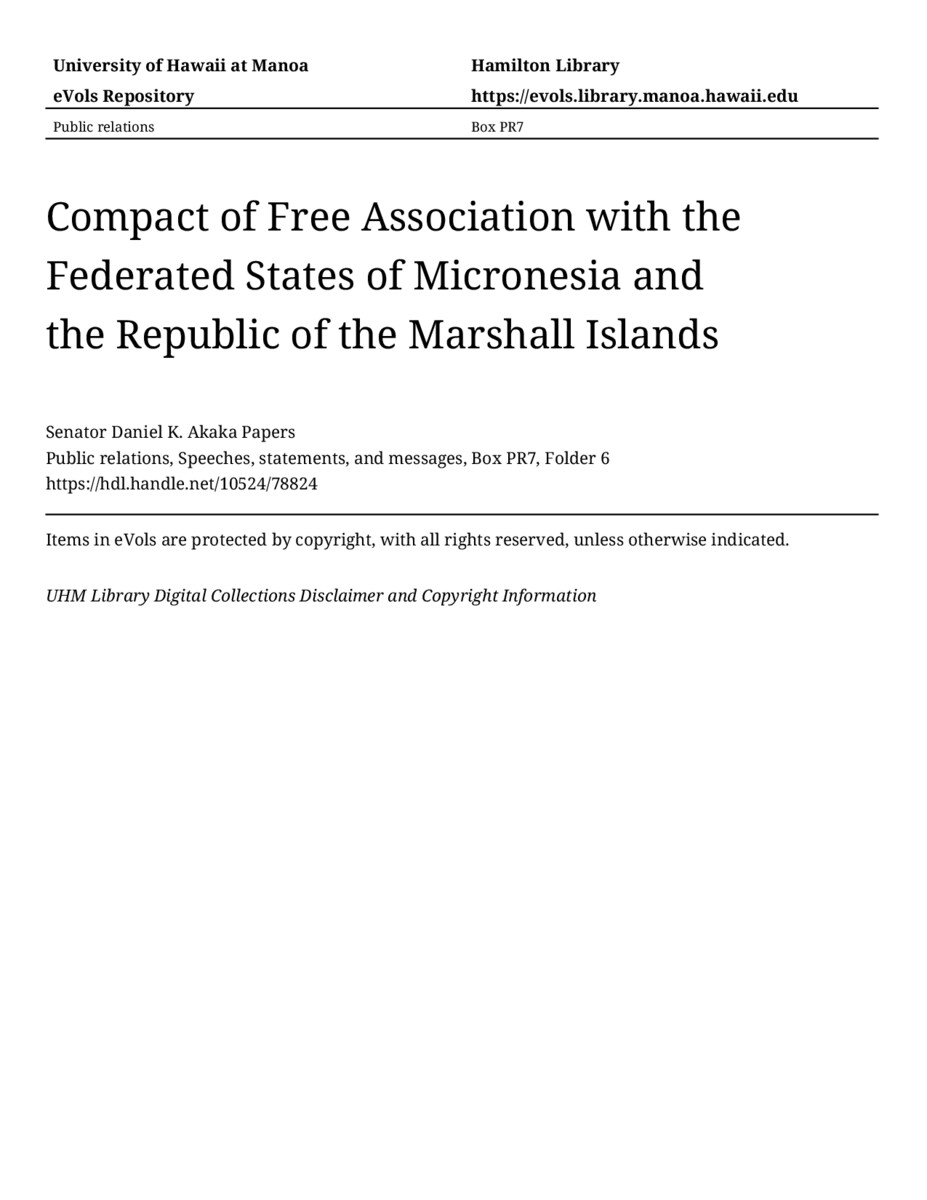 - Compact of Free Association with the Federated States of Micronesia and the Republic of the Marshall Islands