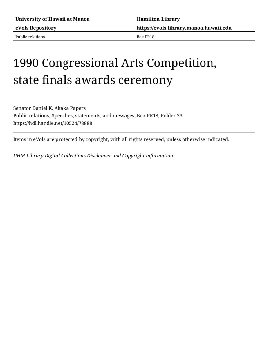 - 1990 Congressional Arts Competition, state finals awards ceremony