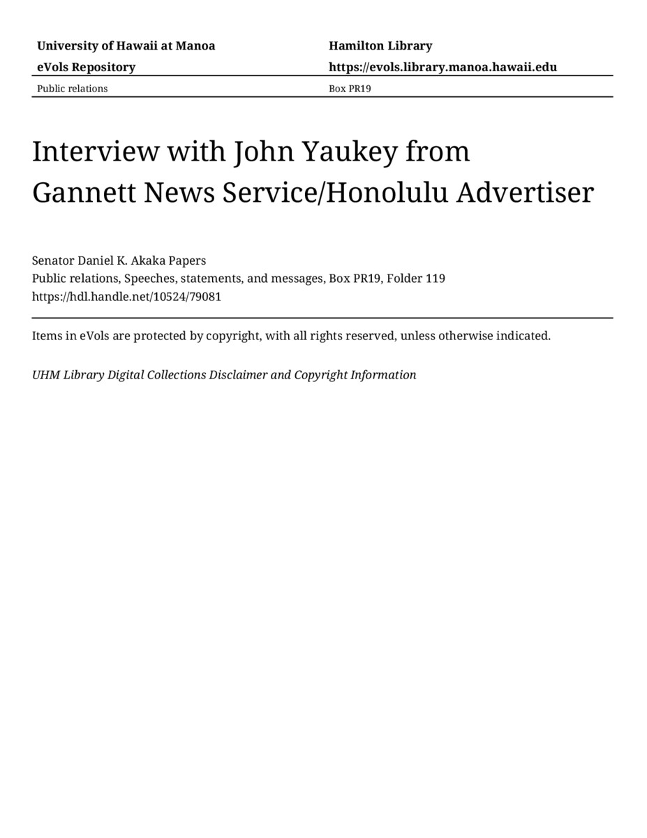 - Interview with John Yaukey from Gannett News Service/Honolulu Advertiser