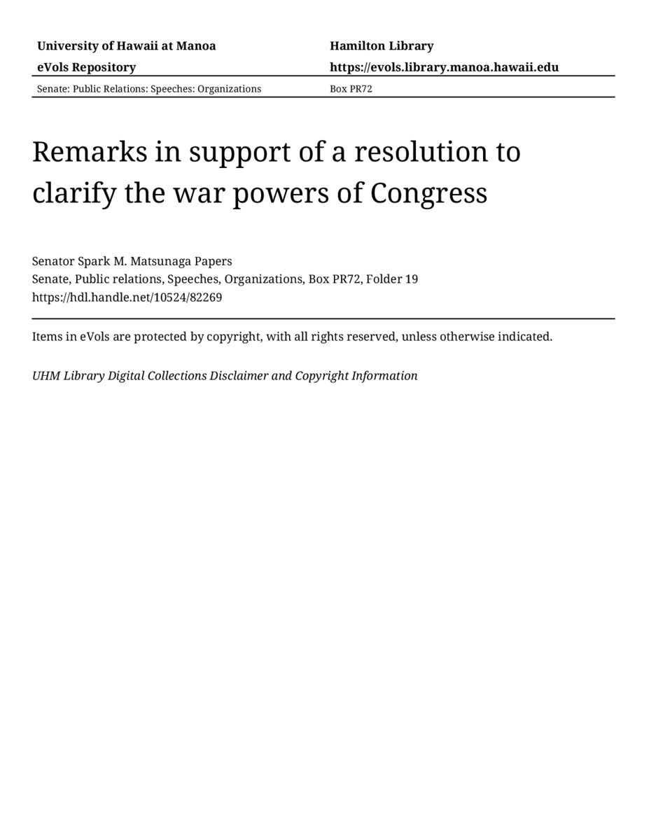 - Remarks in support of a resolution to clarify the war powers of Congress