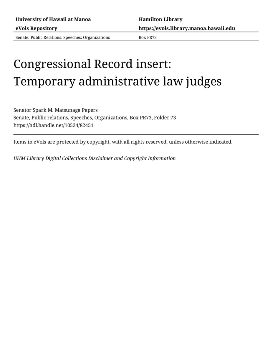 - Congressional Record insert: Temporary administrative law judges