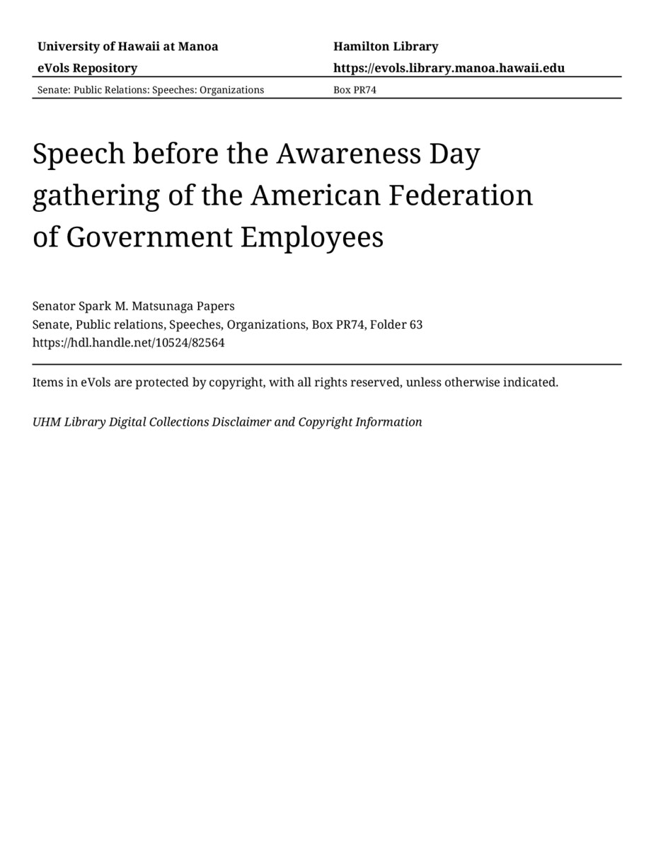 - Speech before the Awareness Day gathering of the American Federation of Government Employees