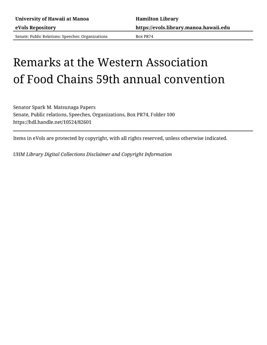 - Remarks at the Western Association of Food Chains 59th annual convention