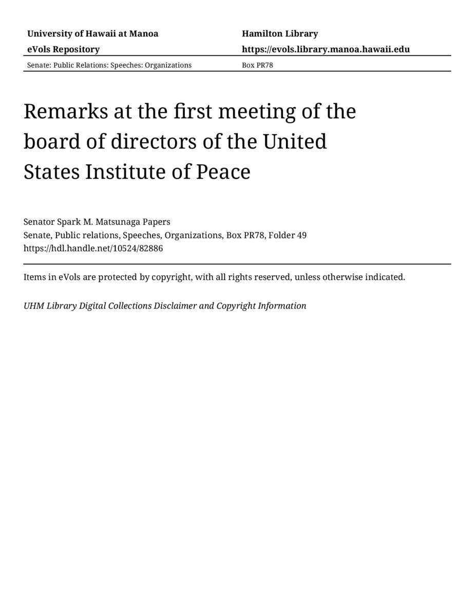 - Remarks at the first meeting of the board of directors of the United States Institute of Peace