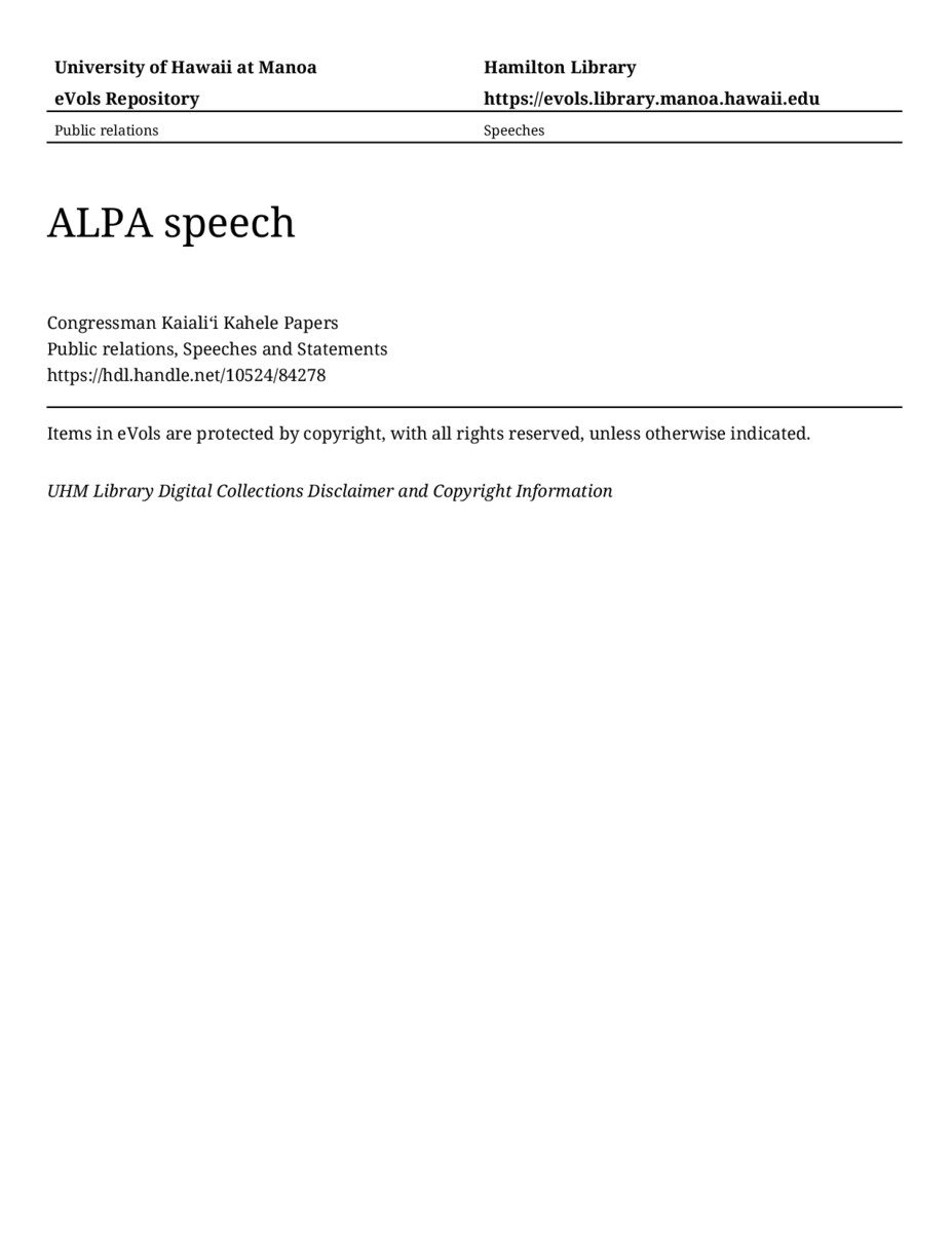 ALPA speech, 5/12/2021, Public relations, Speeches and Statements, Congressman Kaialiʻi Kahele Papers, Hawaiʻi Congressional Papers Collection, University of Hawaiʻi at Mānoa Library, Honolulu, HI. https://congressarchives.org/catalog/10524_84278 (accessed March 20, 2026).
